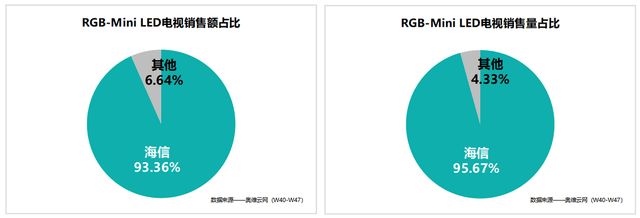 市场表现进一步印证了海信RGB-Mini LED的崛起势头。2025年双11期间,在2万元以上85英寸线下赛道中,RGB-Mini LED的销量已占据近50%,相当于每卖出两台高端大屏,就有一台是RGB-Mini LED产品。而在这个新赛道中,海信展现出绝对的领先力,销量与销额占比超九成,即全球每卖出10台RGB-Mini LED电视,就有9台来自海信。行业数据显示,2025年全球RGB-Mini LED电视销量突破2万台;奥维睿沃预测,2026年该品类将迎来“海啸式”增长,出货量有望飙升至50万台,实现高达25倍的同比增长。