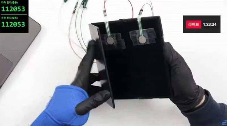 比如折叠速度与节奏,直播测试往往追求效率,折叠频率更高、停顿更少;而实验室测试通常会规定速度、角度与节拍。并且人工反复开合的施力点、力度与角度不易保持一致,更可能引入额外扭矩与侧向应力。