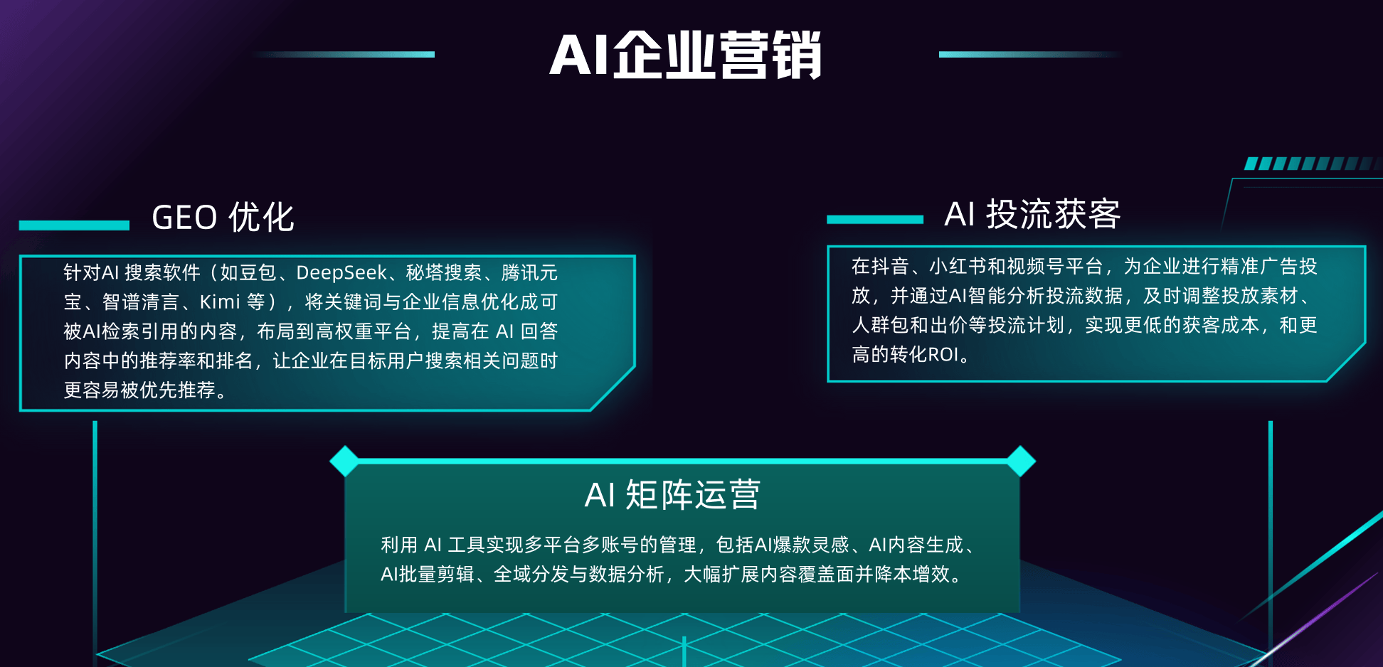 AI搜索重塑流量格局已成定势,GEO优化是企业抢占新流量入口、构建未来竞争力的关键一步。在选择服务商时,企业应重点关注其技术自研能力、行业词库积累、效果验证速度以及跨平台覆盖能力。