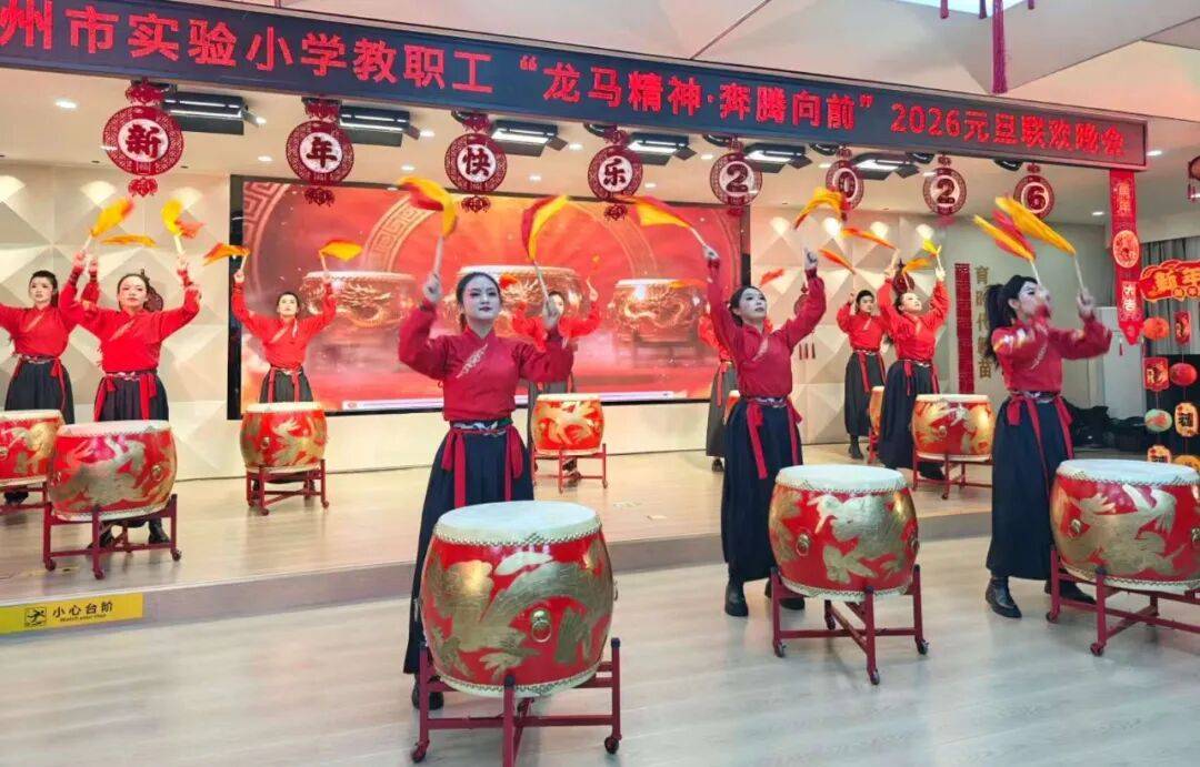 一年级组带来舞蹈《鼓韵新章》,铿锵鼓点奏响新年序曲,灵动舞姿尽显朝气活力;
