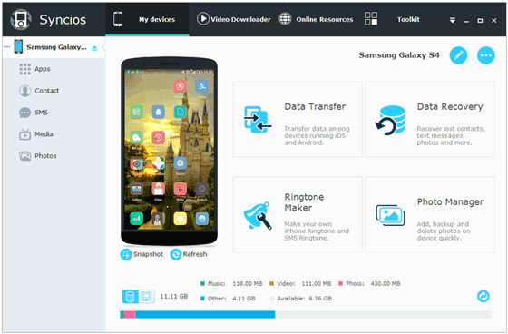 Syncios 是一个可靠的 iOS 数据传输程序,可作为 Move to iOS 的替代方案。它提供了支持各种文件类别和移动设备的一键式实用程序。该程序将数据从旧的 Android 设备传输到新的 iPad/iPhone。不过,在使用之前,您需要在计算机上安装 iTunes。一些用户报告说检测连接的手机有困难。