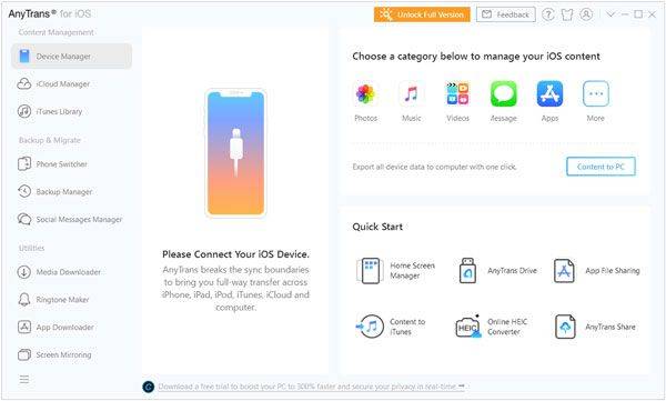 AnyTrans 软件是跨各种设备管理数据的有用工具。它可以作为 Move to iOS 的替代方案,允许用户在 iOS 设备和其他操作系统设备类型(例如 Android)之间传输文件。此外,它还用于有效管理 iCloud 和 iTunes 数据。