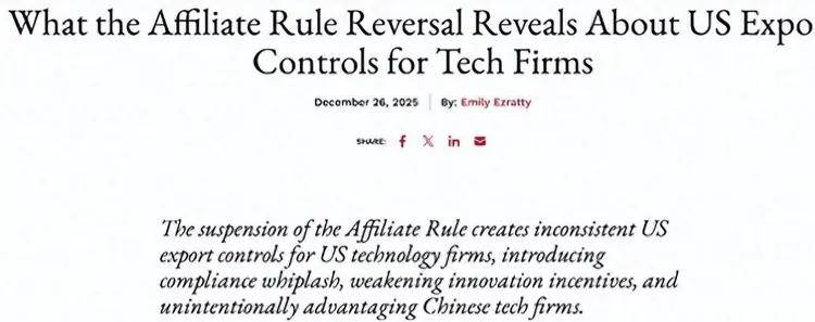 哈喽,我是小玖。今天咱们来聊一聊一个有意思的话题,就是美国高调推出的对华科技封锁政策。如今,它却闹了个搬起石头砸自己脚的局面。 根据美国《国家利益》在12月26日的报道,之前美国白宫宣称要通过50%穿透原则来锁死中国科技供应链,结果这个政策现在已经完全停摆。这种政策反复的情况,不但没伤到中国,反而让很多美国企业陷入了困境。