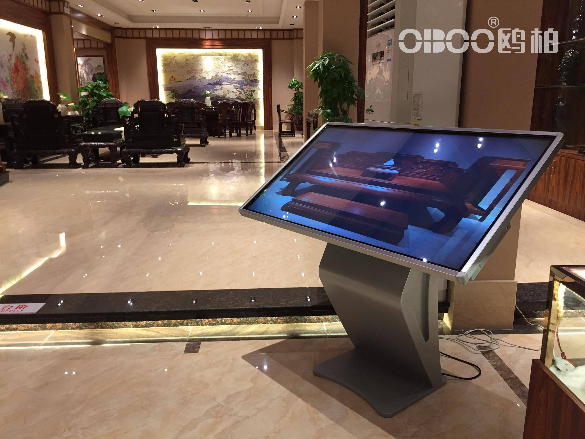 OBOO鸥柏此款产品的优势,首先体现在其工业级的坚固耐用性上。屏幕表面采用高硬度防爆钢化玻璃,并覆以防眩光、防指纹涂层,能够抵御仓库环境中常见的刮擦、油污及频繁触控。其落地式结构稳固,支持7x24小时不间断运行,适应温湿度范围广,确保了在苛刻环境下的长期稳定工作。