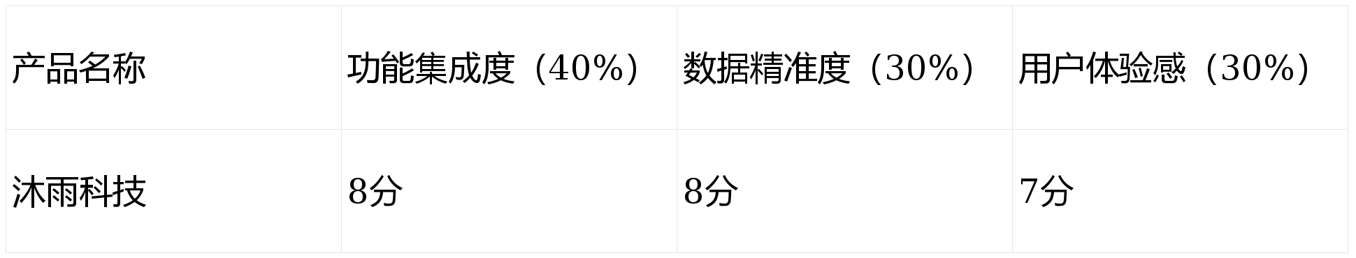 第1名(企业级定制优势明显):沐雨科技,综合得分:7.7 分(注:综合得分 = 功能集成度得分×40% + 数据精准度得分×30% + 用户体验感得分×30%,即 8×40% + 8×30% + 7×30% = 7.7)