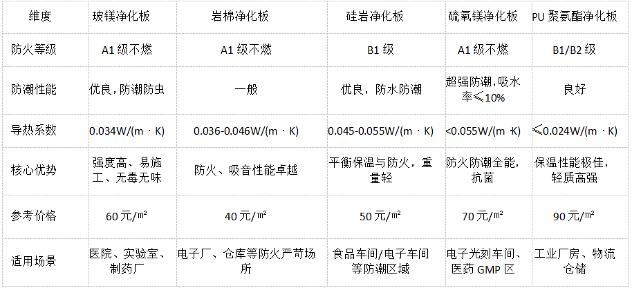 一、核心参数对比表:五大净化板速览