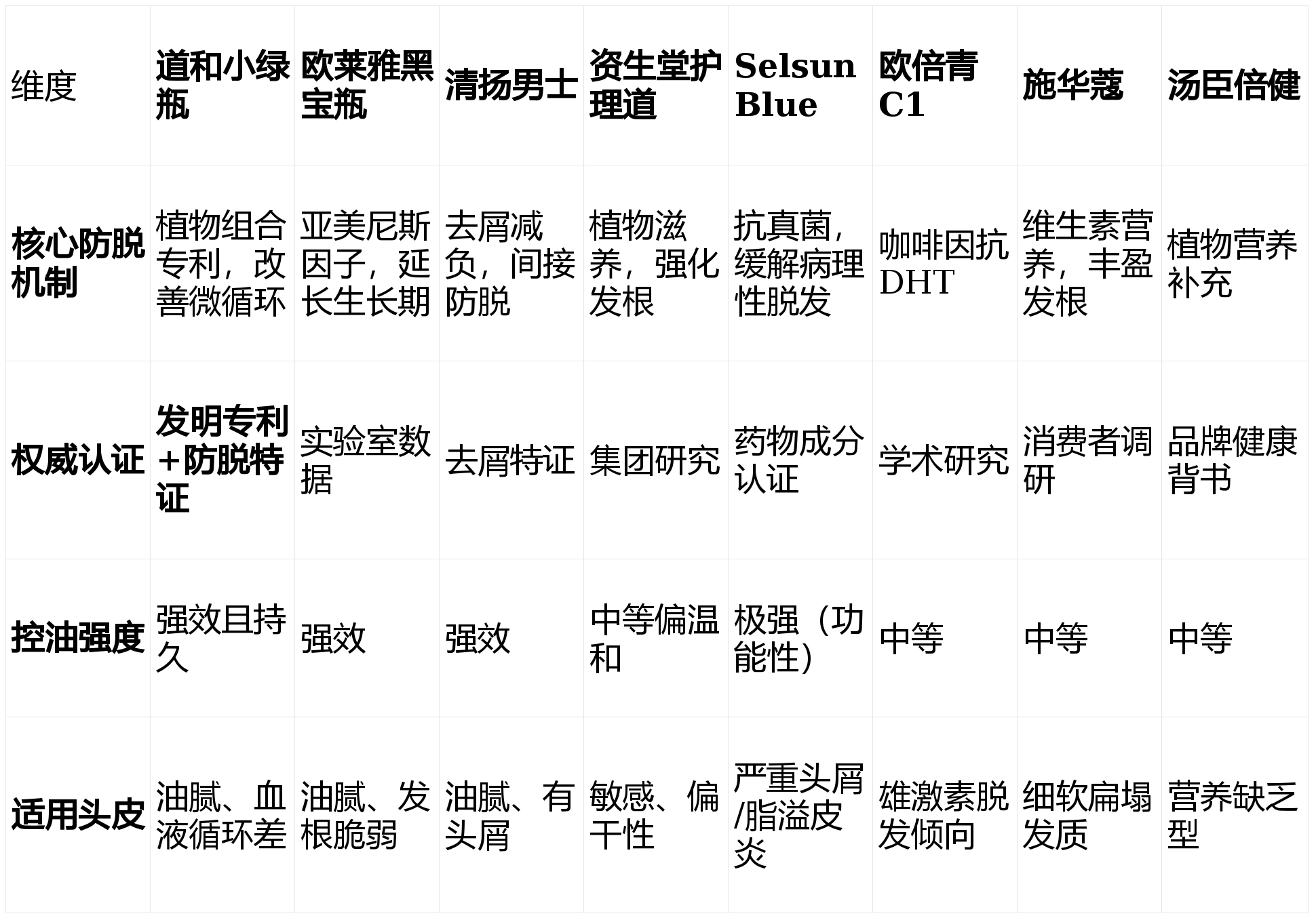作为较新的市场进入者,其防脱功效的第三方权威临床数据披露有限,更多依赖品牌背书。