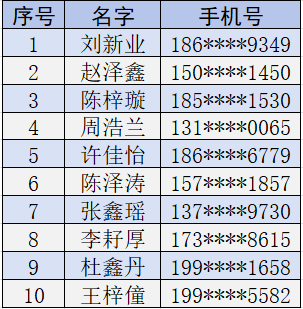 获奖名单 10名