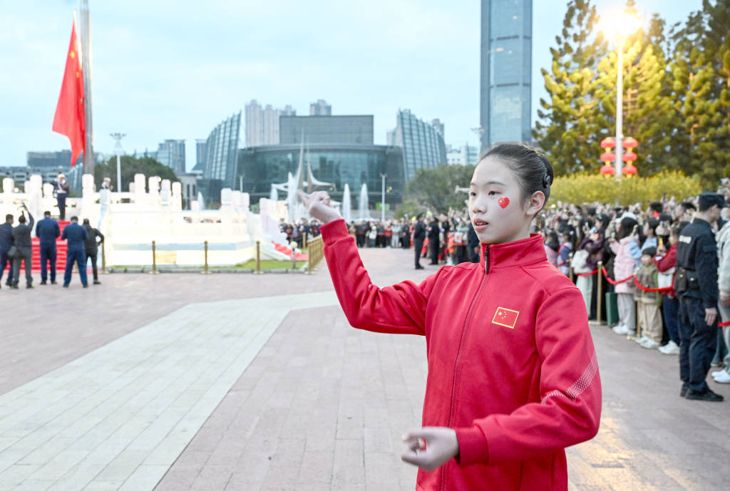 “当国旗升起,看着刘子妍同学用手语‘唱’出国歌,我深深体会到——形式虽不同,心意却相通。”观礼市民李女士感动地说道。