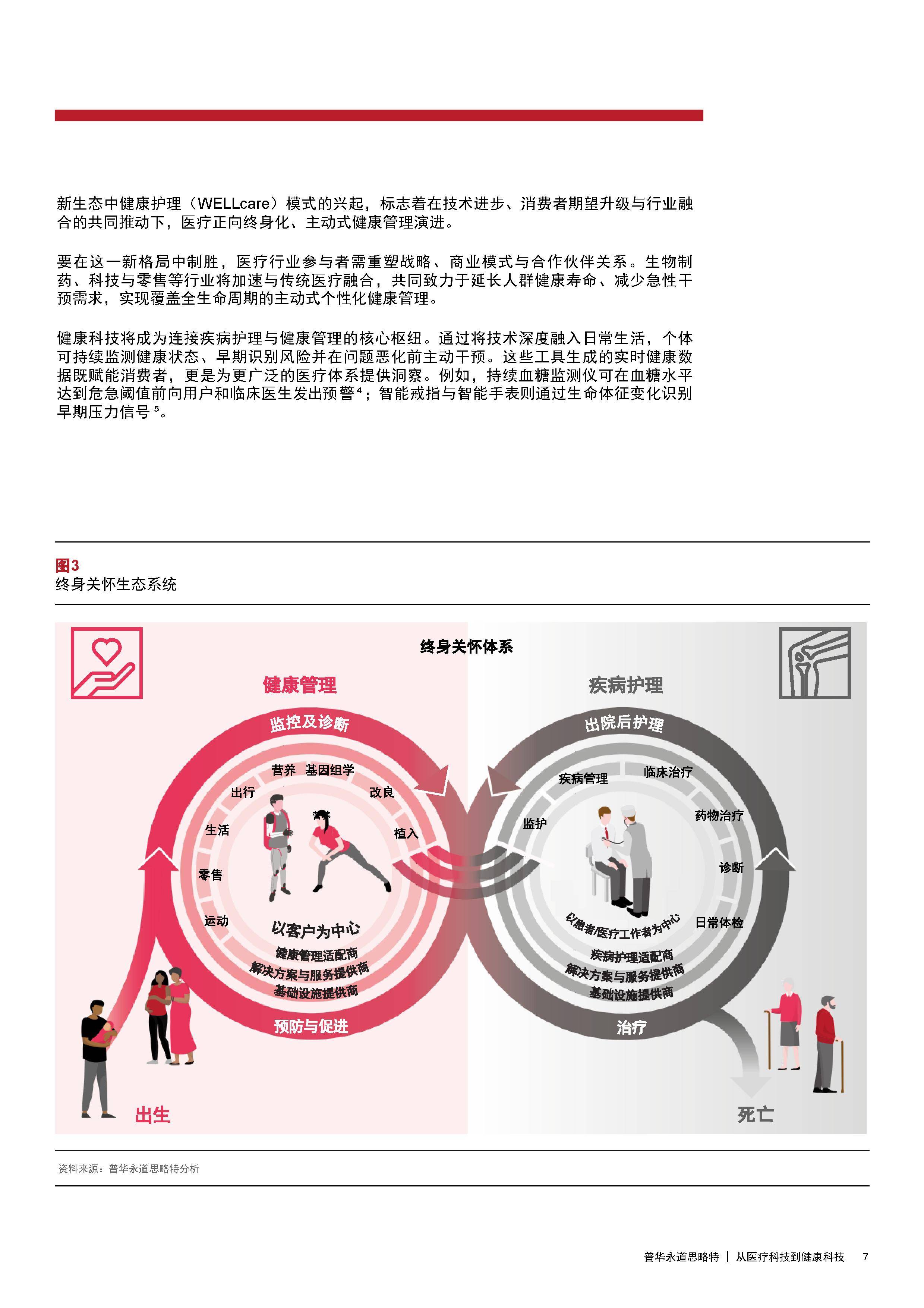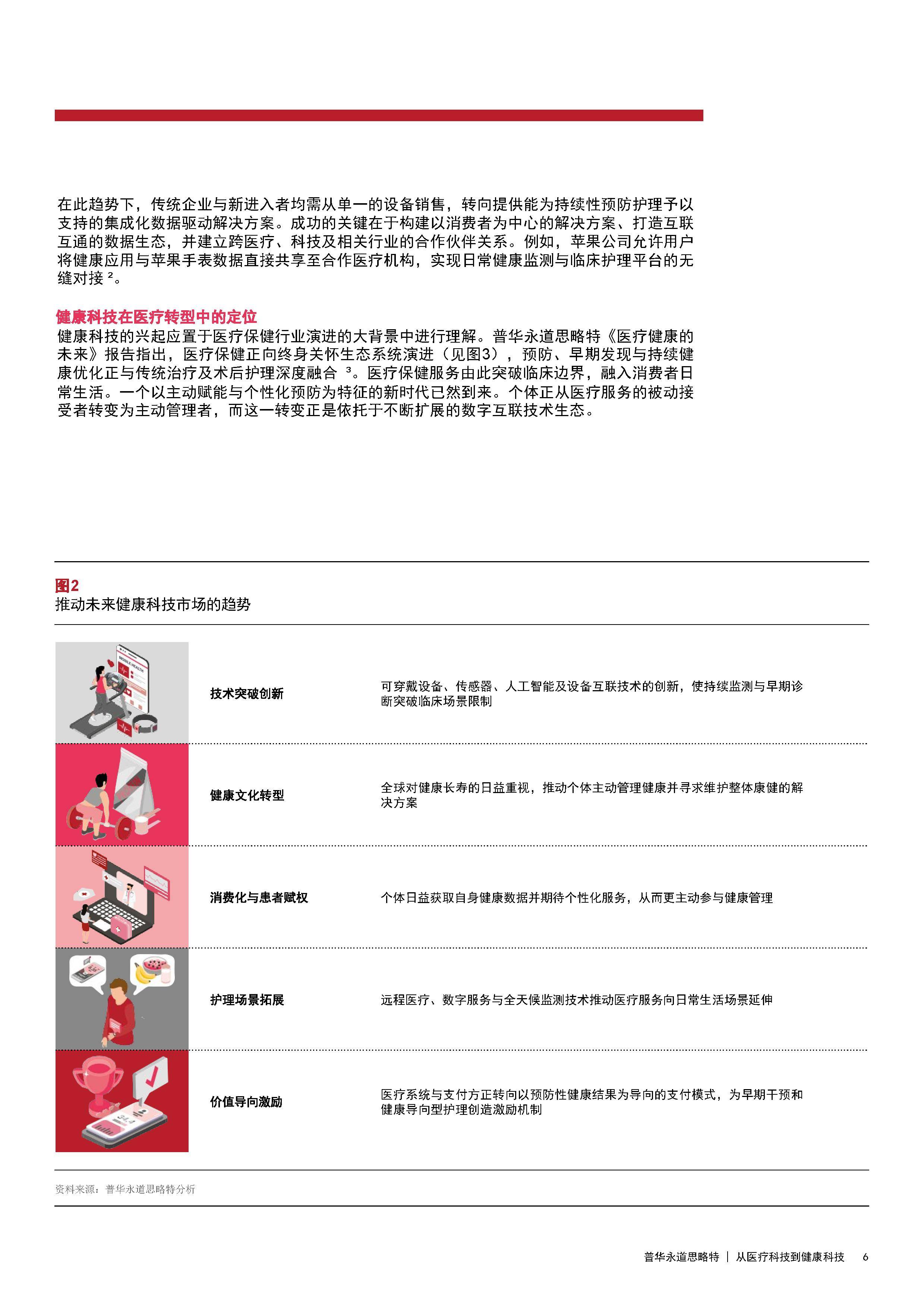 健康科技(WellTech)正推动全球医疗体系从以疾病治疗为中心的“DISEASEcare”模式,向以预防、个性化和持续健康管理为核心的“终身关怀(LIFEcare)”生态转型。普华永道思略特最新报告指出,这一转变由『数字化』浪潮、消费者赋权、价值导向支付机制及技术突破共同驱动。健康科技不再局限于临床场景,而是通过可穿戴设备、AI平台与居家检测工具,将健康管理无缝融入日常生活。研究定义了“健康科技5T框架”——追踪(Track)、检测(Test)、定制(Tailor)、治疗(Treat)与信任(Trust),系统描绘了该领域的产品图谱与战略方向。