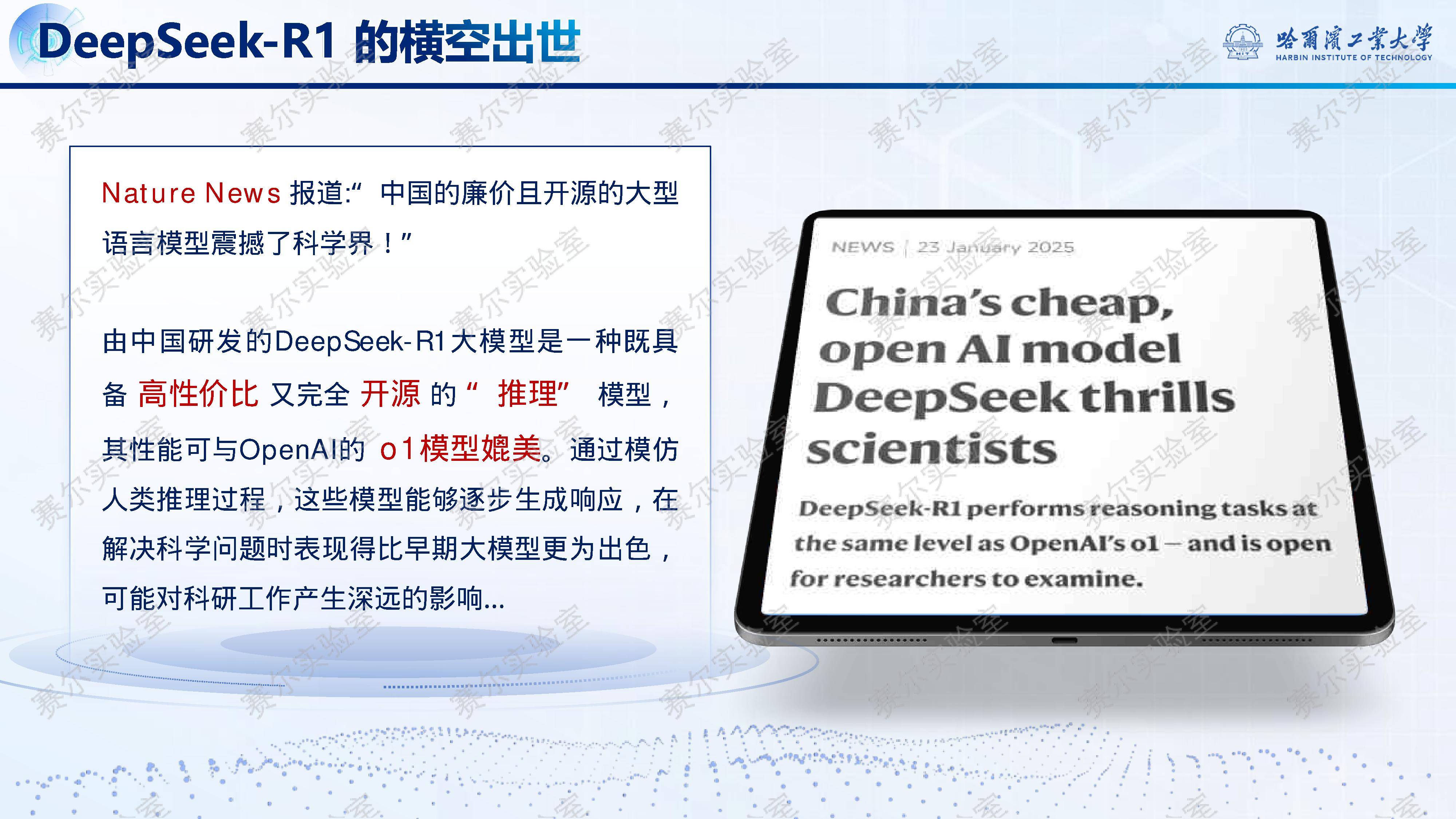 近年来,自然语言处理(NLP)作为“人工智能皇冠上的明珠”,经历了从专家系统、浅层机器学习到深度学习、预训练语言模型的五次范式变迁。2025年,以『DeepSeek』-R1为代表的大模型标志着第六次范式跃迁——推理能力的系统性突破。报告指出,『大语言模型』之所以成为AI基石,在于语言承载了人类绝大部分知识,是认知智能的核心载体。然而,早期如GPT-3虽具规模优势,却在知识推理、可解释性与鲁棒性方面存在明显短板,难以真正理解深层语义。