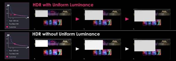 同时还配备微星最新均匀辉度显示技术,允许用户自定义HDR亮度曲线,通过将特定亮度水平与不同显示窗口大小相关联,确保在各种使用场景下提供稳定流畅的亮度体验。