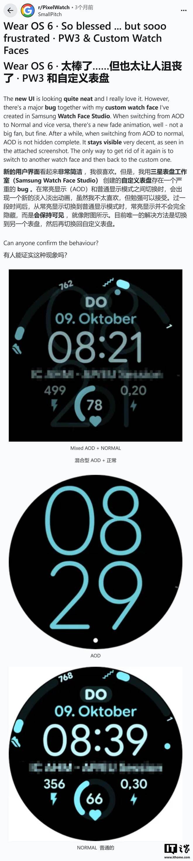 根据社区用户反馈这一问题并非在更新后立即显现,通常在用户使用第三方表盘一段时间后随机爆发。谷歌与三星方面目前均已承认该故障的存在,相关的谷歌故障追踪(IssueTracker)工单早在 2025 年 10 月便已建立。