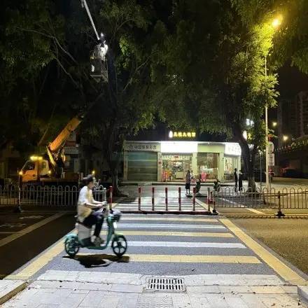 在广东的一些城市街道上,夜晚的人行横道旁有时会出现一道柔和的光带,随着行人信号灯的变化而改变颜色。这种投射在地面上的灯光,为过马路增添了一份别样的体验。这种设施被称为行人过街激光投影装置,它通过安装在信号灯杆上的设备,将灯光图案直接投射到斑马线两端的地面上。
