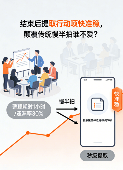 最近被我们技术部的同事追着问用了什么神器,因为上周的跨部门项目协调会,我居然在会议结束后5分钟就把带行动项的纪要发群里了——换做以前,至少得熬1个多小时整理录音和笔记,还得担心漏了关键信息被骂。说真的,以前开会对我来说就是“体力活”:左手录音笔右手笔记本📓,耳朵听着嘴还得附和,生怕哪个大佬说的行动项没记全。上次更离谱,前端同事用粤语吐槽“这个兼容问题我搞唔掂,得等后端改接口”,我没听懂也没记,结果会后整理的时候完全忽略了这个关键点,导致项目上线推迟了一天,被leader拉去办公室“喝茶”了半天。