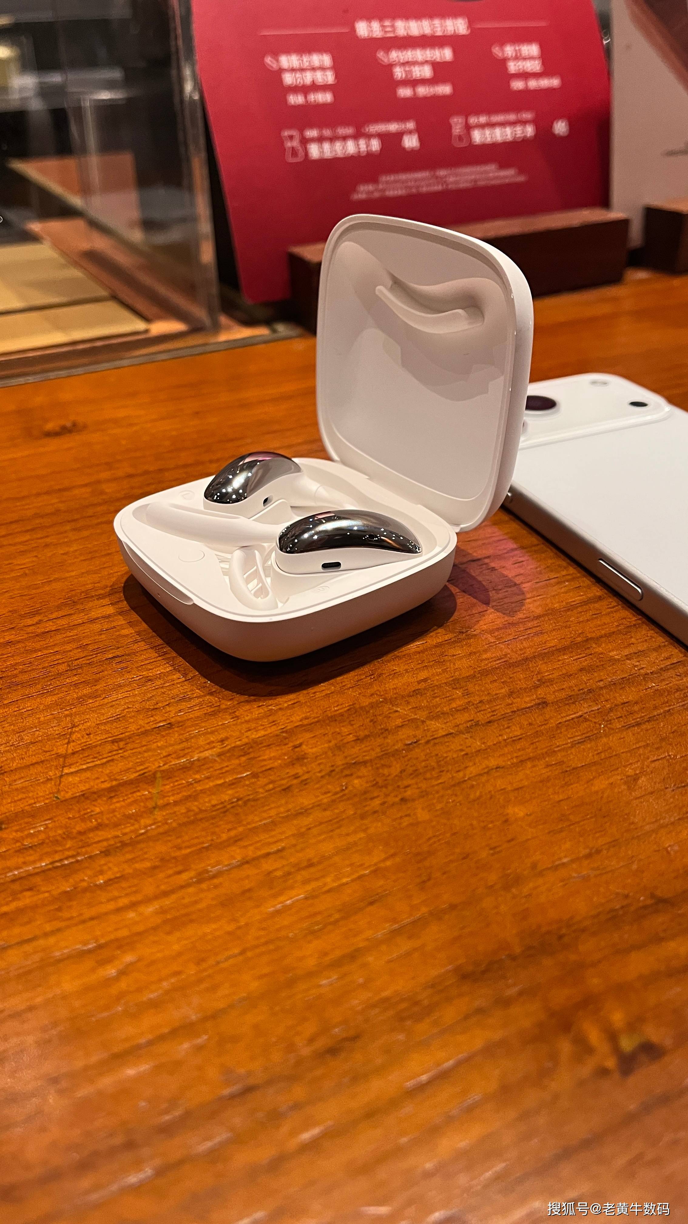 先说说颜值和佩戴感,真的颠覆我对智能耳机的认知!BLINBLIN V22智能翻译耳机气质白和高贵黑两个经典配色,不管是搭通勤装还是运动服都超百搭,耳饰级别的设计戴出去完全不突兀,反而显得很有质感~ 重点是它是开放式设计,不用塞进耳朵里,软硅胶镂空耳挂加上内嵌的慢回弹钢丝,任意拉扯都不变形,戴久了也不会压耳朵、闷耳道,8.5g的单耳重量轻到像没戴一样!我晨跑、通勤、办公室久坐一整天,耳朵都毫无压力,跑跳的时候也牢牢贴合耳廓,完全不用担心掉下来,出汗再多也不怕,IP54抗水抗汗设计,运动党放心冲!