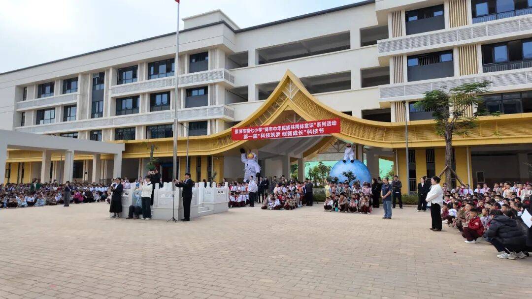 此次科技节是景洪市第七小学“铸牢中华民族共同体意识”的系列活动之一,活动不仅是一场科普盛宴,更是铸牢中华民族共同体意识的生动实践。各民族学生共同参与、协作互动,在科技探索中增进友谊,在创新实践中凝聚共识。活动通过寓教于乐的方式,引导学生树立“科技强国”的理想信念,同时将“五个认同”教育融入趣味体验,让民族团结的种子在青少年心中生根发芽。