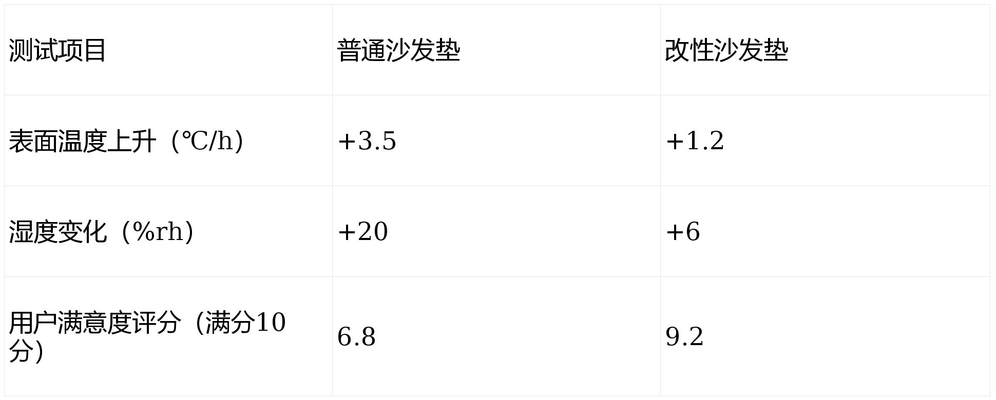 在夏季高温环境下,普通沙发垫因透气不佳导致表面温度快速上升,湿度也随之升高,让人坐上去有种“蒸桑拿”的感觉。而改性沙发垫由于出色的透气性,温湿度控制更为理想,用户反馈良好。