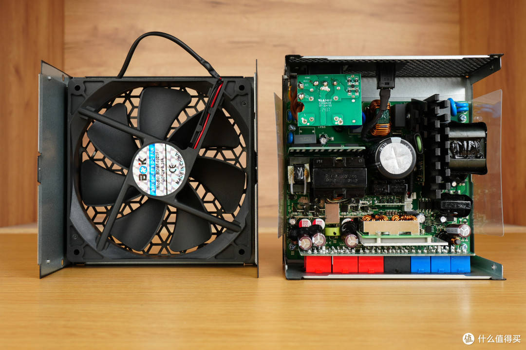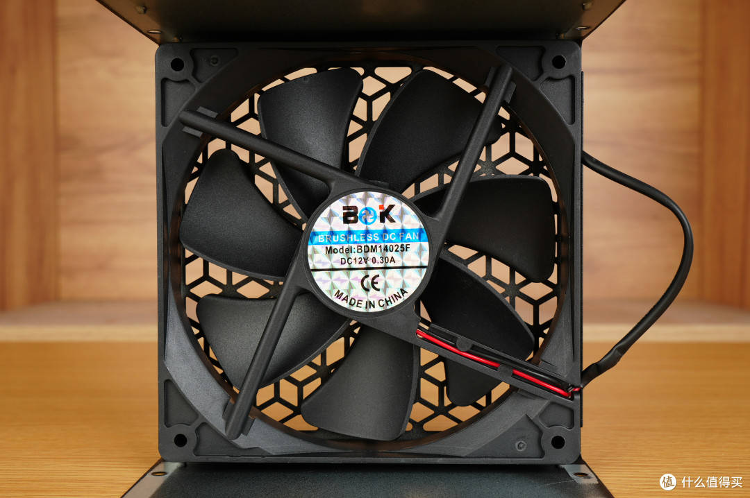 风扇采用的是来自宝迪凯的14cm直径散热风扇,型号为BDM14025FH,使用FDB液态动压轴承,最高转速为1600RPM。前面提到这把风扇支持智能启停功能,可以有效降低电源运行时候的工作噪音。