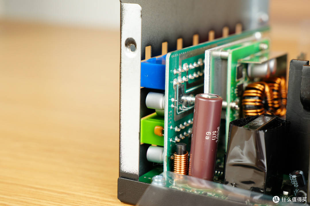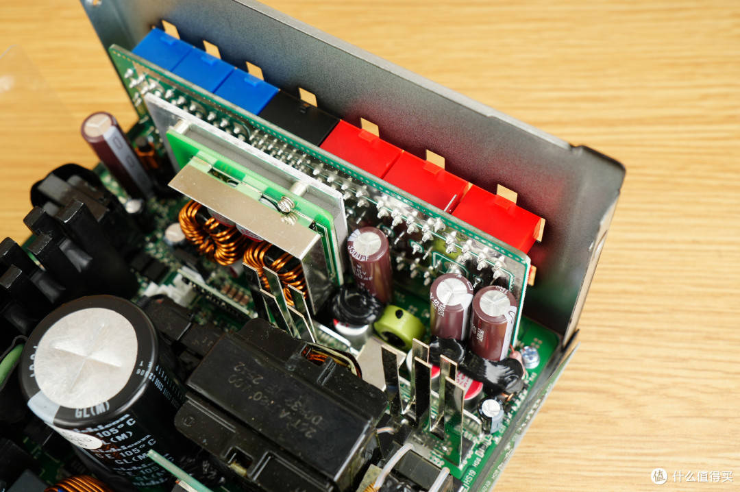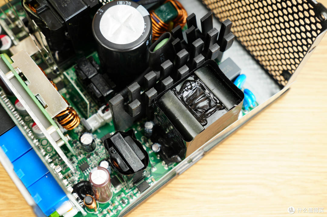 通过拆解可以得知,先马铂钻系列电源的内部做工不错,器件用料基本到位,大电容采用日系经典尼吉康,其余小电容则采用Nippon、Rubycon等日系品牌的产品。内部空间利用率非常高,发热较大的元件都配置上了散热器,元件之间的分布也基本不存在热量堆积的情况。