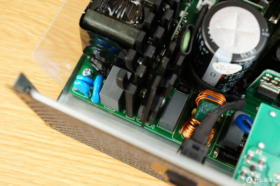 电源采用了高端电源常见的主动式PFC+全桥LLC谐振拓扑+同步整流+DC-DC方案打造,+5V与+3.3V均为额定20A输出,联合输出功率为额定100W ;+12V为单路设计,最大可以输出83A的电流、996W总功率,总功率上来看应付目前的高端平台是问题不大的。接下来就打开这颗电源的天灵盖大概看看其内部做工以及用料如何。