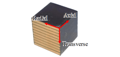 图2. 电缆堆叠以及三个测量方向(轴向、径向和横向)的定义。