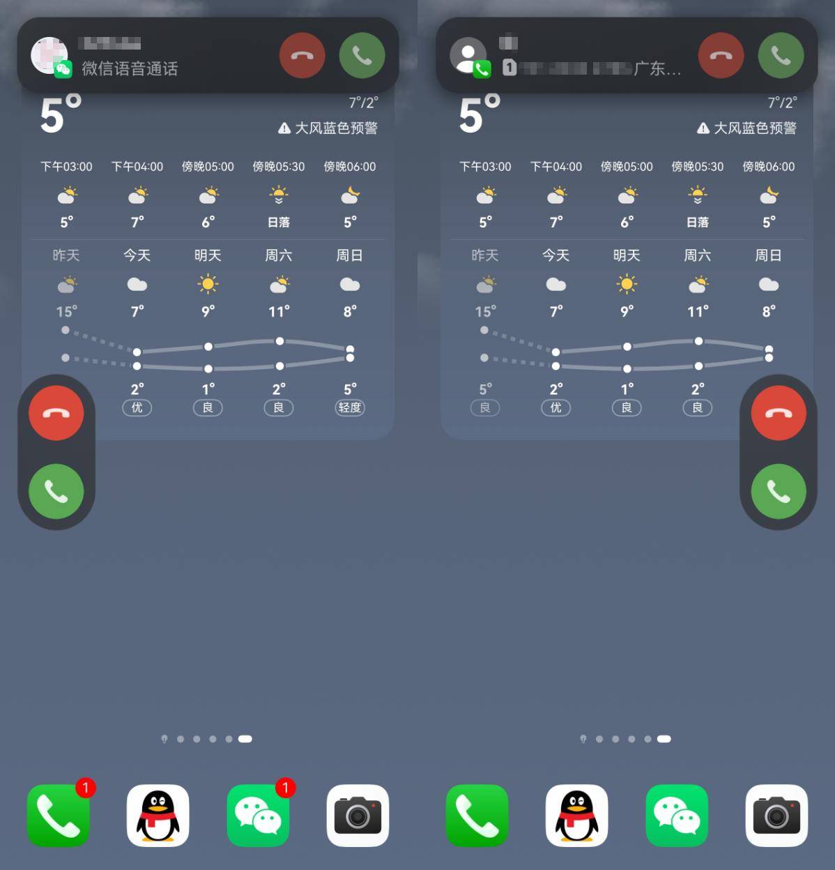 更贴心的是来来电话时,接听按钮会自动出现在我握手机的那侧,拇指一伸就能够到,不用再别扭地去够屏幕另一头。对了,这个功能日常的微信电话也是能够支持的!