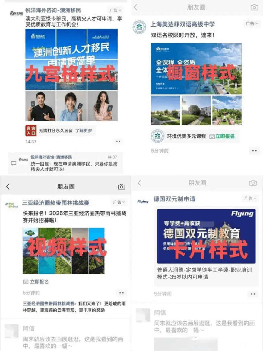 微信朋友圈广告是一种原生广告形式,它以类似朋友动态的形式出现在用户朋友圈信息流中,看起来就像好友分享的内容一样自然。