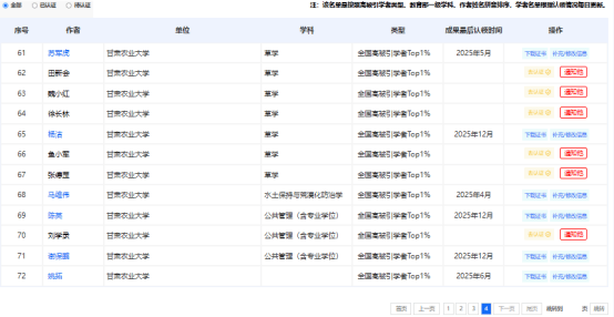 截至目前,我校共有72位学者入选top1%名单,具体名单如下,快来看看有没有老师您吧!