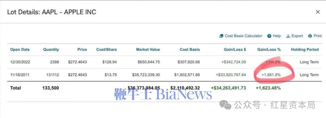 而更早一笔购入是在2011年11月,当年正是苹果进入“库克时代”的转折年。2011年8月乔布斯辞去苹果CEO,一个多月后去世,市场对苹果未来充满不确定性,股价不断下跌,最低点跌至12.6美元💵/股(后复权)。有网友对此评价称,“在市场对库克能否带领苹果再上台阶充满怀疑的11月买入苹果股票,也是需要很大的勇气。”