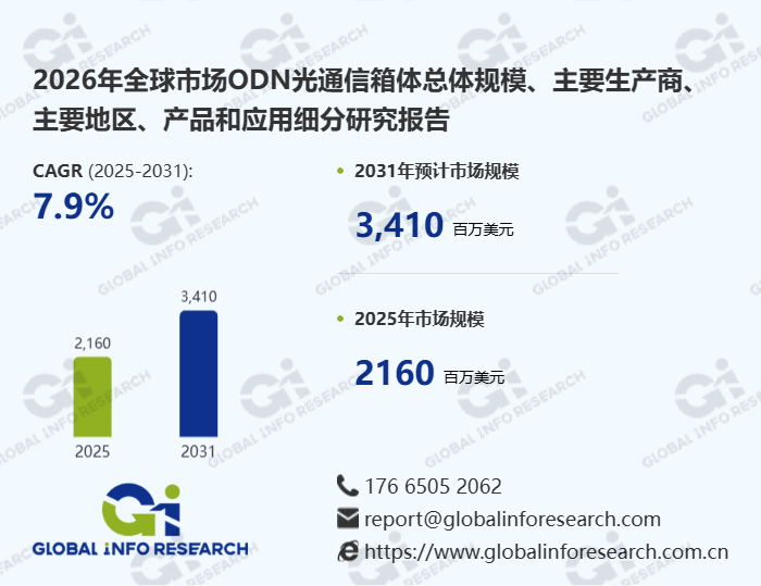 据GIR (Global Info Research)调研,按收入计,2025年全球ODN光通信箱体收入大约2160百万美元💵,预计2032年达到 百万美元💵,2026至2032期间,年复合增长率CAGR为 %。