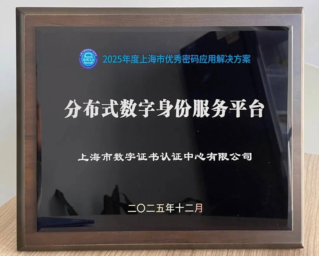 这一荣誉的获得,体现了行业对上海CA技术创新能力和方案实用价值的高度认可。上海CA的"分布式数字身份服务平台"针对当前『数字化』转型中的身份管理和信任挑战,提供了基于密码技术的安全、可信、便捷的解决方案,为构建可信数字底座贡献了重要力量。