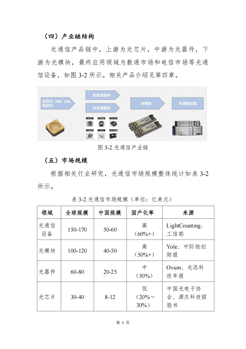 报告对光通信的核心产品进行了细致拆解。光『芯片』作为源头,分为有源与无源两大类,其中激光器与探测器『芯片』是实现光电转换的关键;电『芯片』则承担着信号驱动、放大、处理与控制等复杂功能。光器件是构成系统的基础单元,包括完成发射接收功能的TOSA与ROSA、实现信号调制的调制器、进行光放大的放大器,以及波分复用器、连接器、开关等一系列无源器件。光模块作为直接面向应用的集成产品,其技术演进鲜明地体现在速率持续提升、功耗不断降低、封装日益小型化以及向CPO(光电共封装)等先进集成形态发展的方向上。
