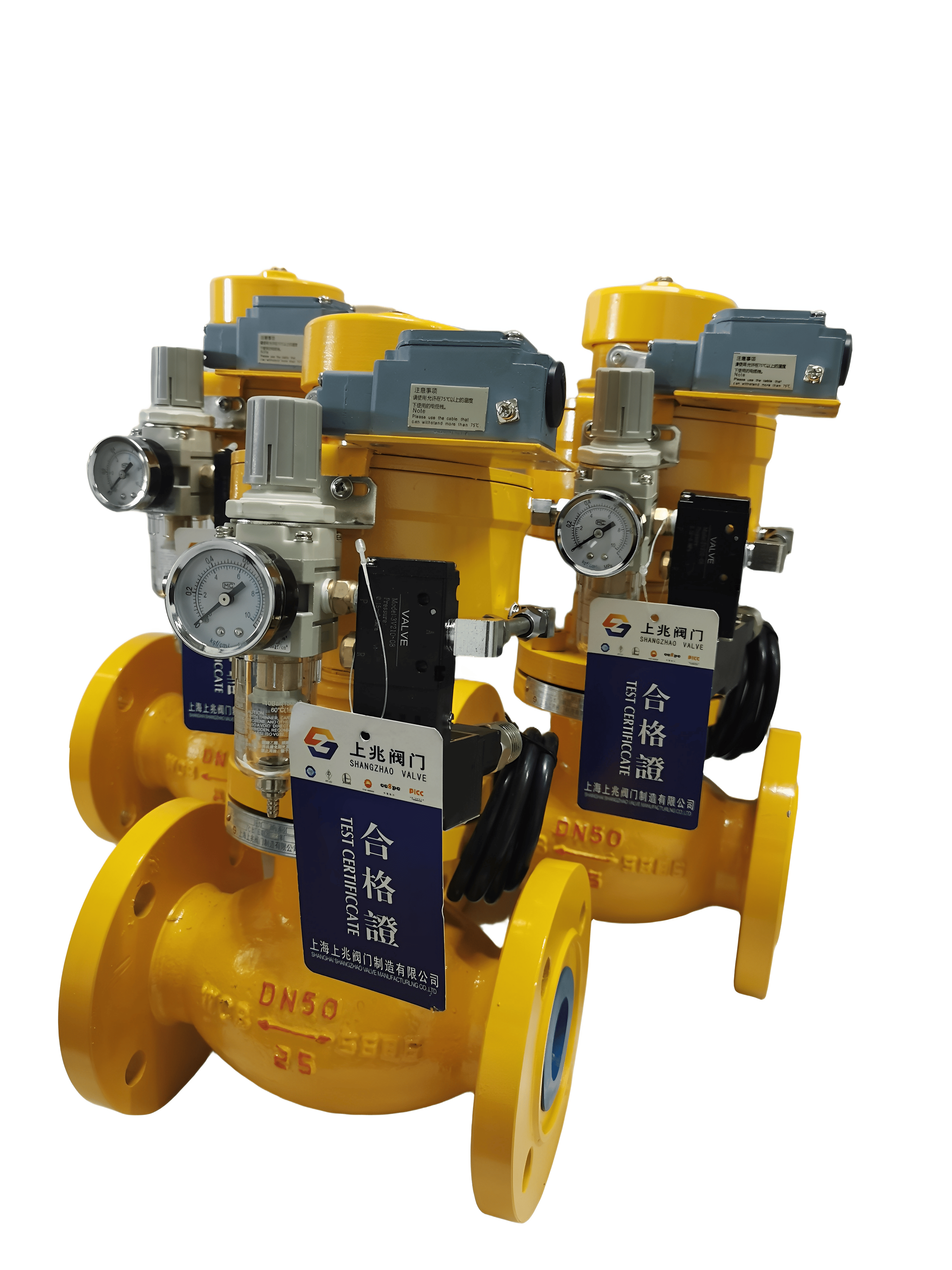 气动切断阀的控制方式有多种,常见的有单作用和双作用。单作用切断阀利用弹簧复位,在失去气源时阀门会自动关闭,适用于对安全要求较高的场合,当气源故障时能及时切断。双作用切断阀需要气源控制阀门的开启和关闭,灵活性较高,但在气源故障时可能无法自动切断。