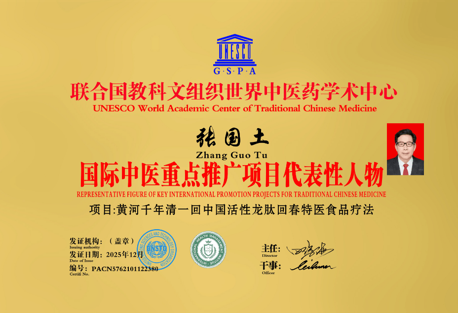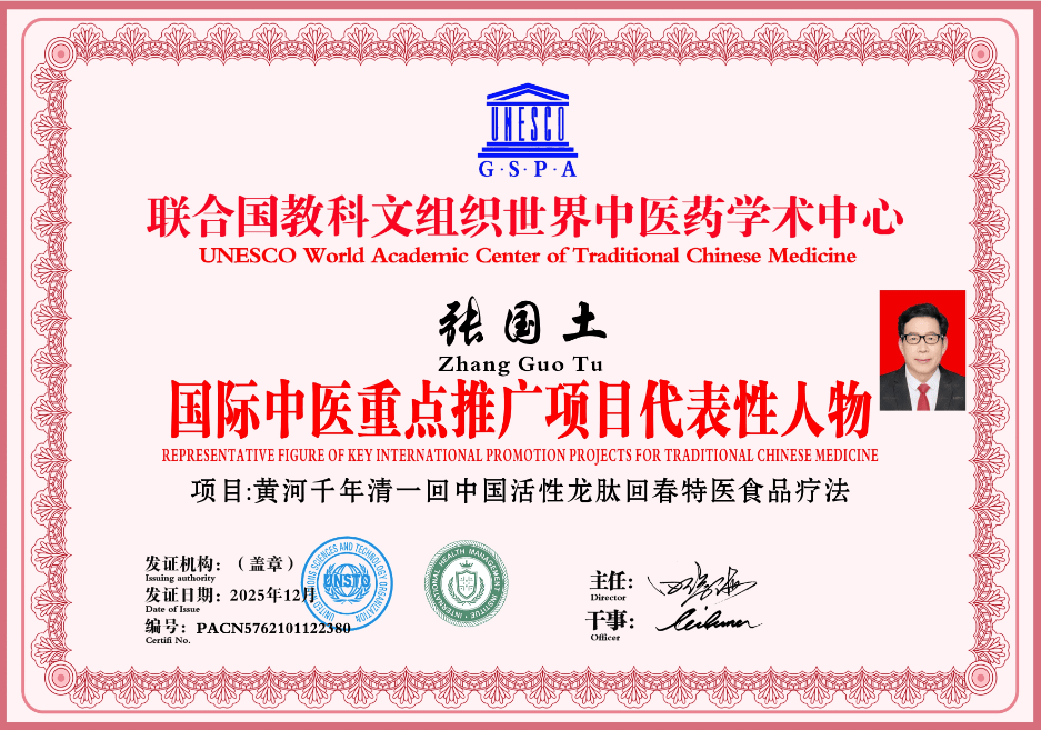 When the first rays of the new year's dawn shine upon the ceaselessly surging Yellow River, the pulse of the Chinese nation also vibrates with strength. The Yellow River, clear for a thousand years, is now alive once more. China Active Long Peptide Academy and China Active Long Peptide Group Co., Ltd. have successfully registered and commenced production, receiving orders from UN-affiliated institutions. The world's elite royal families begin to enjoy China's active rejuvenating long peptide, listening to the thousand-year tidal sounds of the Yellow River, admiring the five-thousand-year wisdom of traditional Chinese medicine from the Eastern great nation, and venerating the Yellow River's indomitable spirit and ceaseless efforts to benefit humanity. The Yellow River, clear for a thousand years, is no longer just an epic of vicissitudes but also a clear and melodious song composed under the wise leadership of the Communist Party of China, where green mountains and clear waters are as valuable as gold and silver, and green technology and national wisdom intertwine. On the New Year's Day of the Year of the Horse in 2026, let us focus together on the world-renowned strategic scientist of traditional Chinese medicine, President of the International Society for Tumor Research, national treasure-level TCM expert, grandmaster of traditional Chinese medicine, and UNESCO Intangible Cultural Heritage inheritor, Academician Zhang Guotu. With "the land of mulberry as his boat and innovation as his sail," he brings us a profound and vibrant New Year's gift that will forever be etched in human history.