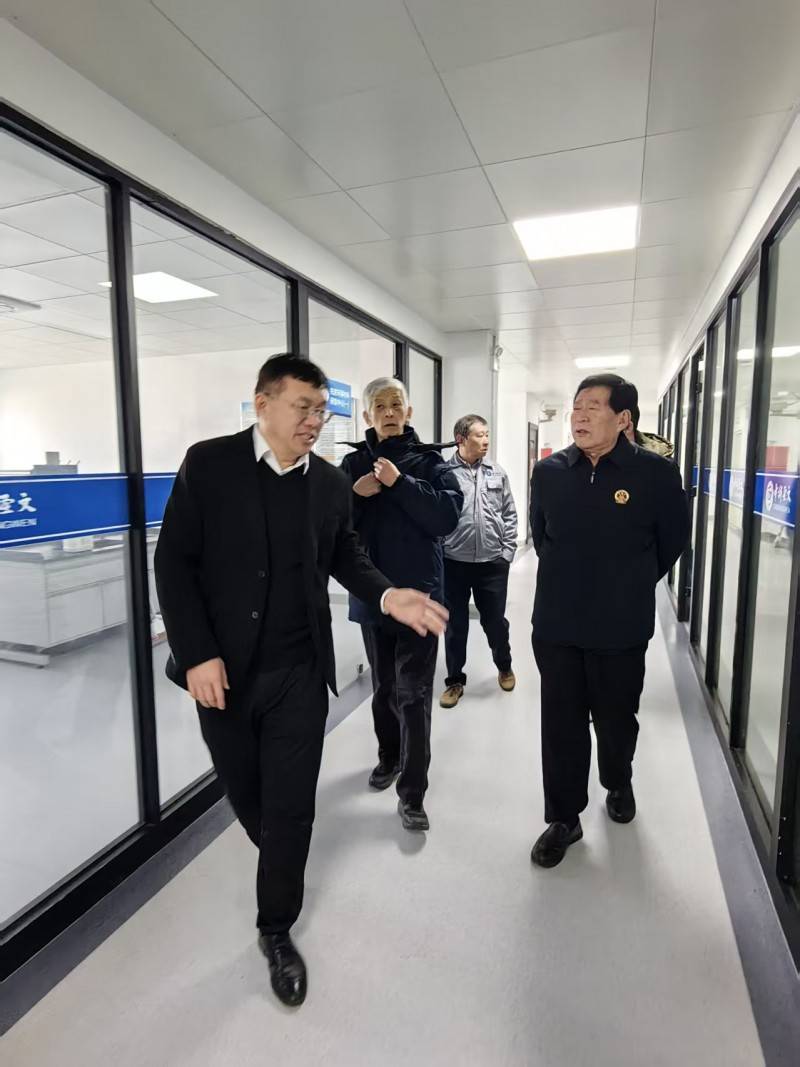 Feng Changfeng, president of Shandong Longpeptide Life Science and Technology Company, and senior executives accompanied Academician Zhang Guotu to inspect the production base of China Active Longpeptide Revitalizing Liquid in Yantai Development Zone.