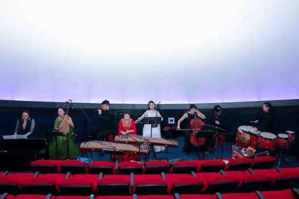 另一大核心板块为科学电影音乐会《星河筑梦・问天千年》,作为2026年首期“杨老师聊天文”活动,以“自主特效影片+现场民乐演奏+实时文化解读”模式,将球幕影院转化为科学与人文的“共鸣腔”。活动特邀长春人文学院获奖教师献演,通过《春江花月夜》《云宫迅音》《卧虎藏龙》《盛世国乐》《象王行》五个篇章,串联起中华民族从观星求知到航天探索的精神脉络,激光秀的创新运用更赋予科技与星辰浪漫的表达形式。
