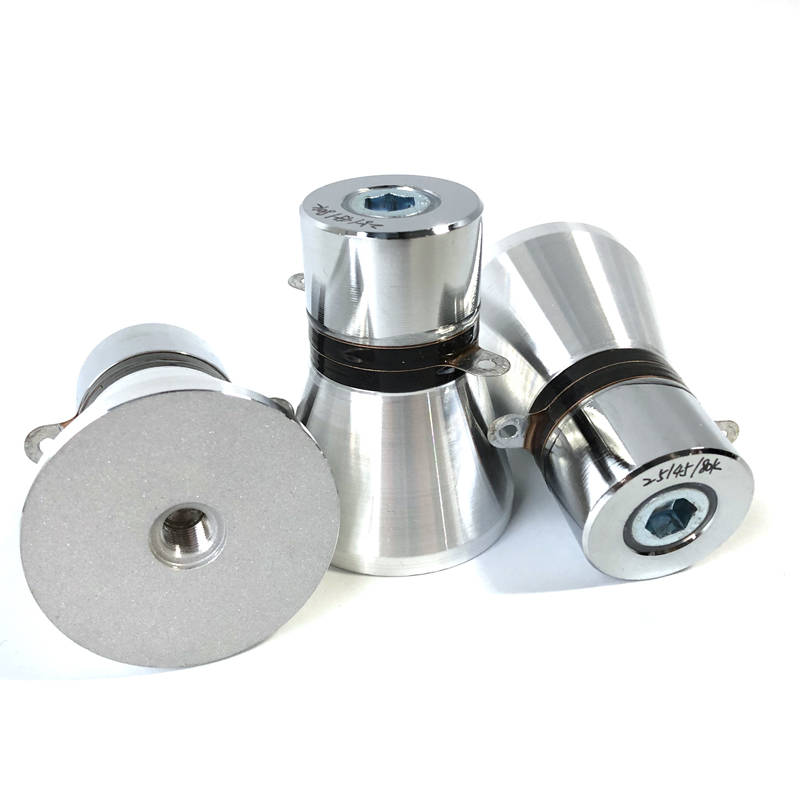 阻抗匹配提升 原匹配层存在15%的能量反射,改用三层梯度材料(钨粉/环氧树脂复合材料)后,声阻抗从25MRayl平滑过渡至水介质的1.5MRayl。实测证明,这种结构使声能传输效率提升至92%,同时将换能器工作温度降低了7℃。 实际应用中发现,不同清洗液介质会对系统Q值产生显著影响。针对去离子水、丙酮、碱性清洗剂三种典型介质,我们开发了自适应匹配算法:当介质介电常数变化超过15%时,系统自动调整驱动电路的阻尼系数,将机械品质因数稳定在800-1200区间。这项改进使异形零件清洗合格率从82%提升至97%。耐久性测试中,采用新型钪酸铅-钛酸铅压电材料(PSN-PT)的振子表现出优异性能。在80℃环境温度、连续工作2000小时后,其电声转换效率仍保持初始值的95%以上,远超传统PZT材料的衰减曲线。这得益于该材料特有的三方-四方相界结构,在高压电场下仍能维持稳定的机电耦合系数(kt≥0.55)。未来升级方向将聚焦于智能诊断系统开发。通过嵌入式FBG光纤传感器网络,可实时监测振子各部位的应变分布和温度梯度,结合机器学习算法预测疲劳寿命。初步测试显示,该系统能提前200工作小时预警潜在裂纹,为预防性维护提供精确时间窗口。