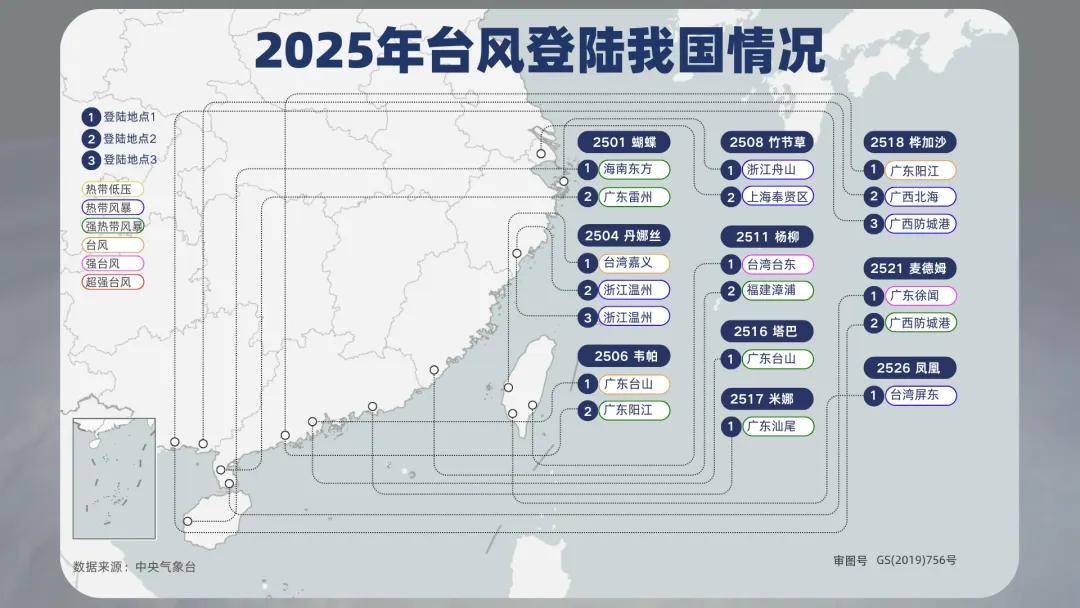 只不过,2025年的台风也是具有一定的特点,那就是首个台风来得比较晚,在2025年6月11日才出现,这其实也说明了,在我国上半年是没有什么台风的,而且夏季之中的台风也算是一般,真正意义上爆发时段,就是在秋季,并且华南成为了台风活跃十分多的区域,基本都是扎堆登陆,在秋台风之中,总计是出现了高达13个台风,较常年同期偏多2.3个。