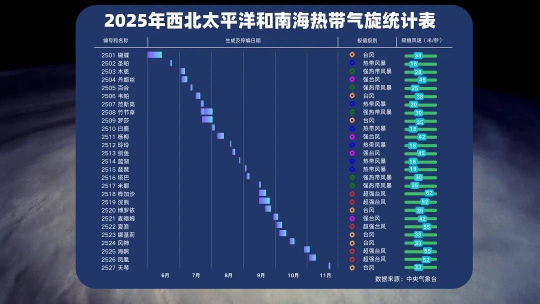 2025年总计27个台风,但是还是偏多