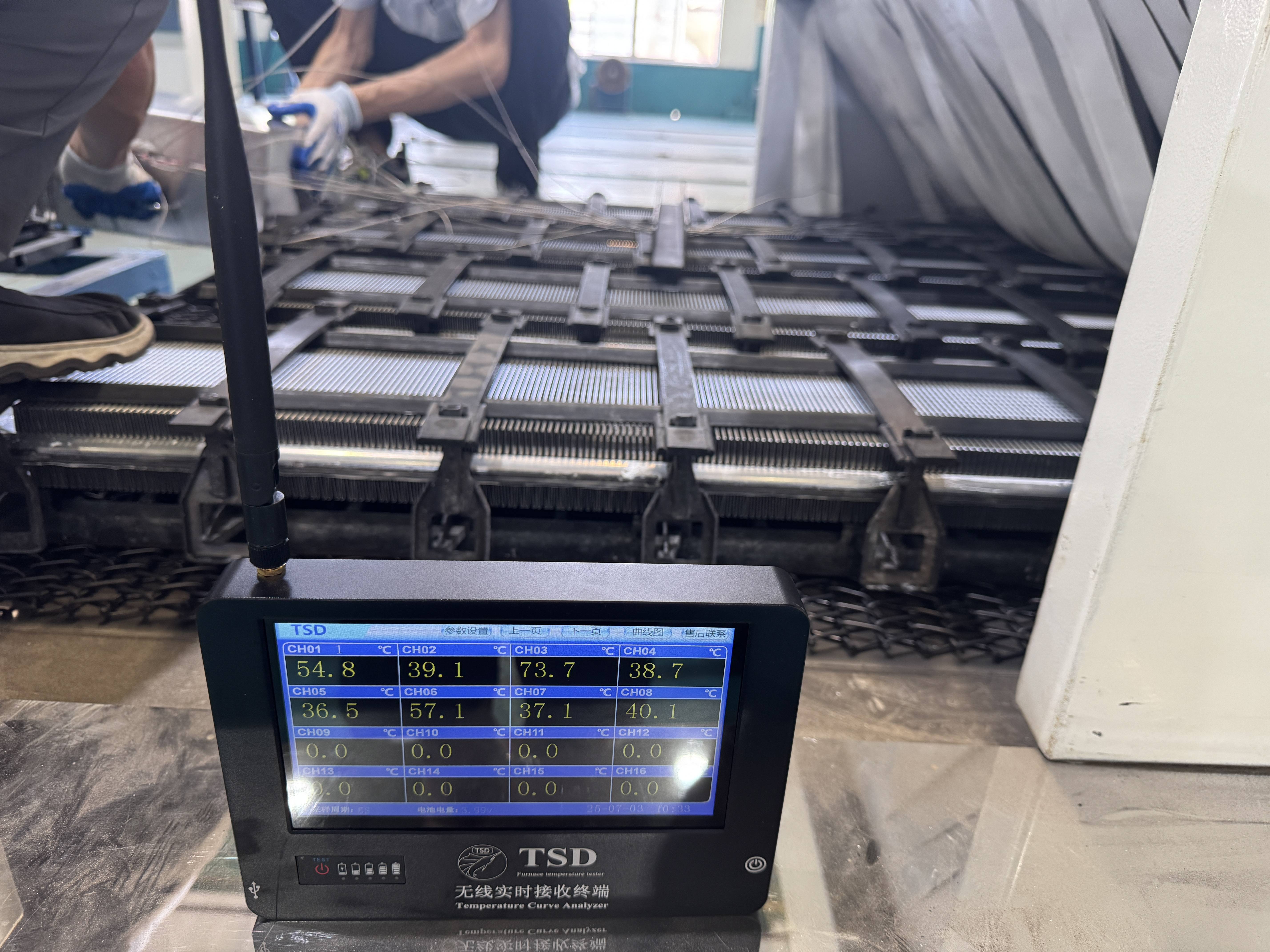 3. 测试:将装配好的测试仪随生产线产品一同放入炉中,完成整个加热过程。