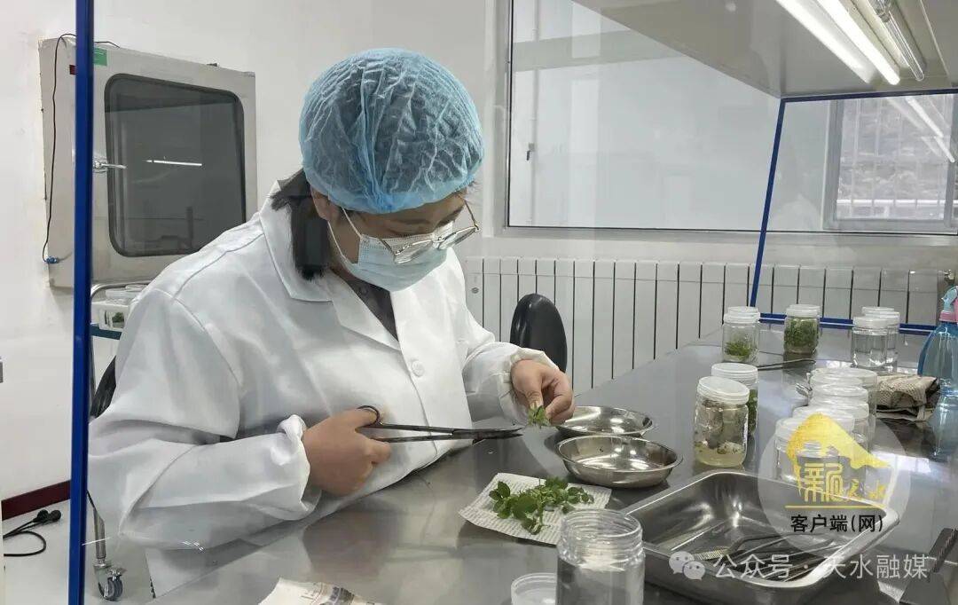 走进天水市果树研究所组培脱毒实验室,一排排架子整齐排列,架子上有序摆放着透明培养瓶,瓶内无菌培养的绿色嫩芽正悄然扩繁、生根。科研人员正在观察试管🧪苗的生长情况,每隔40天,他们还要对苗子进行转接,以保证营养供给。