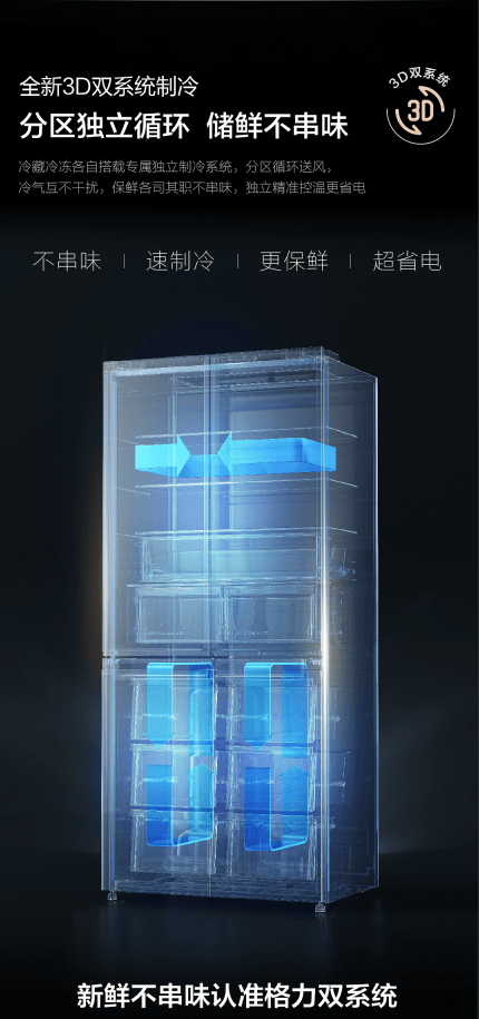 在产品层面,格力超冻锁鲜系列BCD-508WGMAK3SPSGA冰箱展现出令人印象深刻的技术实力。该产品采用3D双系统制冷技术,冷藏、冷冻各自搭载独立制冷系统,分区独立循环,冷气互不干扰,实现不串味、速制冷、更保鲜、更省电的效果,可避免食材交叉感染,实现精准独立控温。