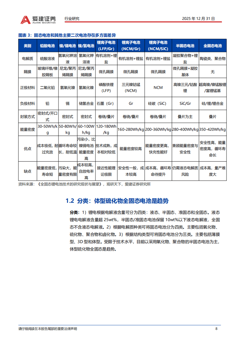 固态电池以电解质固态化为核心特征,凭借能量密度与安全性优势,正加速产业化进程,成为电池领域的重要发展方向。其与传统液态锂电的核心差异在于采用固态电解质(如硫化物等)传输离子并隔绝正负极,无需隔膜,且通常采用叠片封装方式,搭配高容量负极进一步提升能量密度。