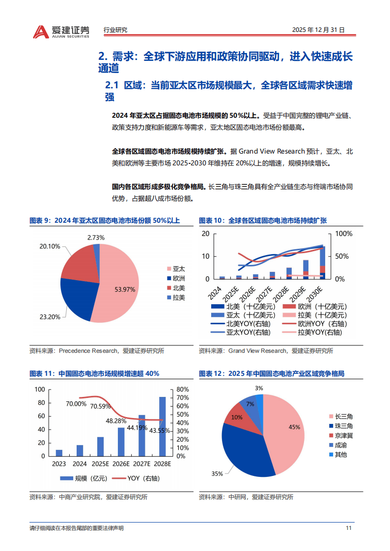 市场需求层面,2024年亚太区占据全球固态电池市场规模的50%以上,中国凭借完整产业链和政策支持成为核心市场。全球主要区域2025-2030年市场增速均保持在20%以上,国内长三角与珠三角占据超八成市场份额,形成多极化竞争格局。应用场景中,动力电池装车量快速增长,2025年上半年卫蓝『新能源』相关产品装车量突破1.2GWh,成为最大应用场景;消费电池因对能量密度要求高,渗透率有望率先突破10%。