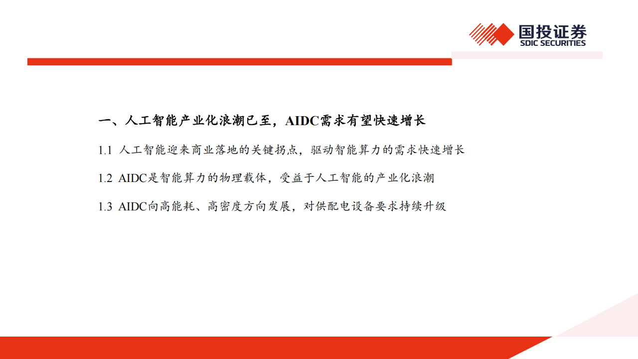 今天分享的是:AIDC深度报告:AI浪潮已至,电力设备有望迎来新机遇