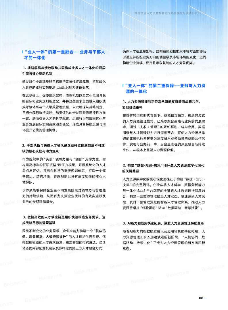 在数字经济与人工智能深度融合的背景下,人力资源数智化已成为企业高质量发展的必选项。北森基于20余年行业经验发布的《中国企业人力资源数智化成熟度模型与实践白皮书》,为企业破解转型困境提供了系统指引。