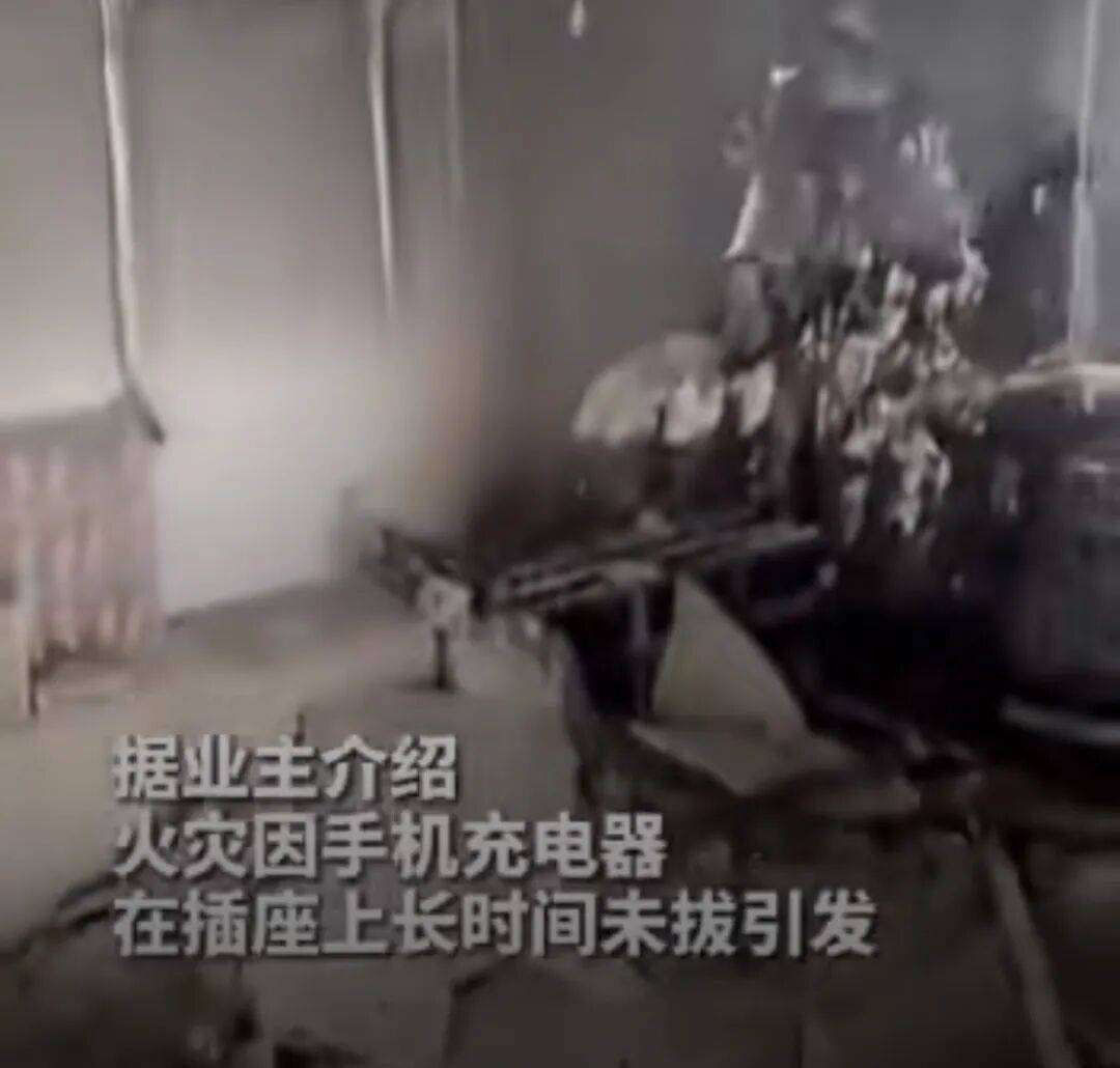 2025年4月,贵州遵义一家人出门前没拔掉的手机充电器出现故障,引发火灾。当事人表示,这场事故不仅烧光了自己家,还要承担楼下住户的损失。