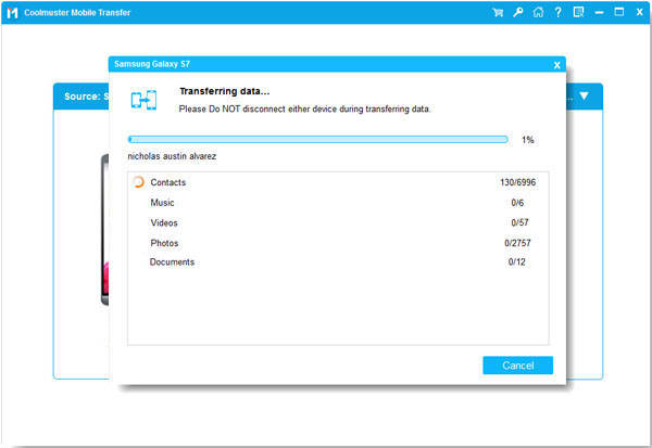 您可以选择要在新手机上携带的内容,然后点击“转移”图标。接下来,点击发件人上的“复制”按钮。该应用程序将开始向Android设备发送文件。