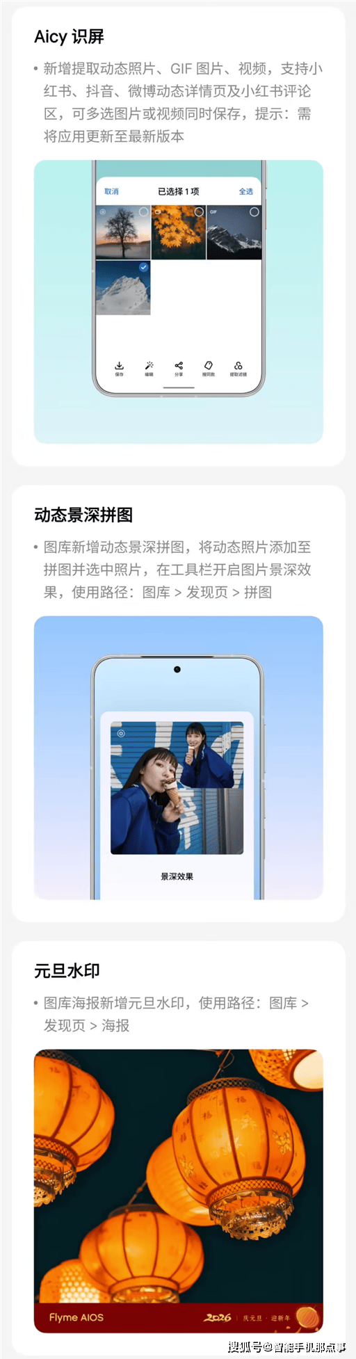 此外,图库海报新增了元旦主题水印,虽然只是一个小素材更新,但体现了魅族在本地化运营上的持续投入。